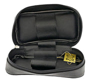 Klaus Ueberholz 2 pipe bag, with place for cleaner and small tobacco pouch.  Size 7 1/8"/181 mm x 3 1/2"/ 90 mm x depth 2 1/2"/ 65mm when zippered closed. Comes with a soft fabric sleeve to protect the leather when not in use.