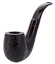 A large full bent with a sandblast of much character in a deep Midnight with Claret highlights stain. A classic. This is a large size pipe with much character of its well defined sandblast very nicely complimented with a dark brindle stem. The pipe passes a cleaner. Group 6+.