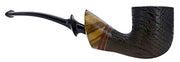 Davorin's take on the classic bent Billiard with a slight asymmetry the back left of the bowl. From there 1/2 way along the shank flares outward with two narrow dark Burgundy bands that accentuate the lighter Cocobolo shank insert. It is a normal sized pipe.