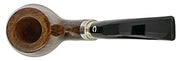 A superb looking bent with tight high contrast mahogany grain on the bowl, with a silver band on shank and stem. Beautiful, yes with thick walls to stay cool throughout a session.
