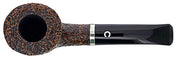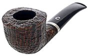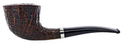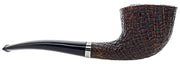 A smaller 1/8 bent Dublin with a superb sandblast. Ring is all around the bowl and well complimented by a sterling silver band.