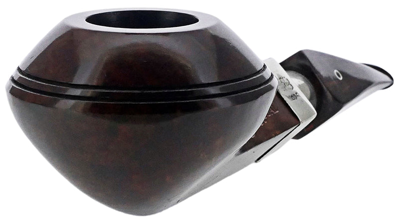 The squat Bulldog came about shortly after the regular Bulldog. The idea was that with a new sten design it would be double silver. And with it's thick walls and wide bowl deliver a shorter and very cool session. The pipe with its deep Claret staining and Cumberland stem is stunning. (GR 5)