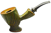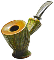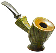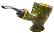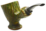 Tatsuo's unique bark carving on this pipe and its brown, deep bronze staining with lighter highlights enhances the deep in the forest look. One almosts expects a doe to peep out from behind it.Ā The stem is a dark grey/black that compliments the stain. It is a large pipe andĀ it is well balanced in the hand and a perfect sitter.Ā